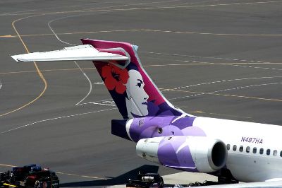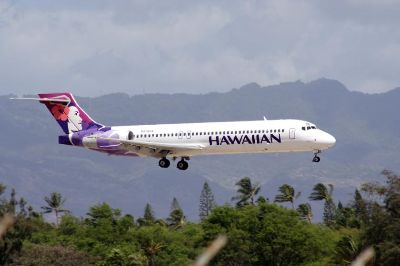 Boeing 717 der Hawaiian im Landeanflug auf Honolulu International