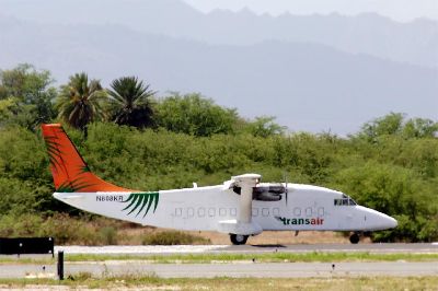 Shorts 360 Frachter der Transair kurz vor dem Start.